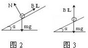 解:(1)导体棒受力如图1所示,根据作图法分析可知,当安培力与支持力垂直,即沿斜面向上时,安培力最小.当导体棒与磁感应强度B垂直时,B最小.