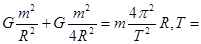 宇宙中存在一些离其它恒星较远的、由质量相等的三颗星组成的三星系统(假设三颗星的质量均为m,引力常量为G),通常可忽略其它星体对它们的引力作用。已观测到稳定的三星系统存在两种基本的构成形式:第一种形式是三颗星位于同一直线上,两颗星围绕中央星在同一半径为R的圆轨道上运行,则两颗运动星体的运动周期为 ;第二种形式是三颗星位于等边三角形的三个顶点上,并沿外接于等边三角形的圆形轨道运行,周期与第一种形式相同,则三颗星之间的距离为 。
