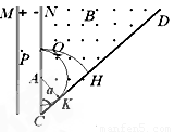 (1)M、N两板间电压取最大值时,粒子恰垂直打在CD板上,所以圆心在C点,