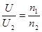 根据变压器的电压与匝数成正比及功率相等求解。