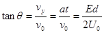 ⑵设电子离开电场时速度与x轴的夹角为θ,则有![]()