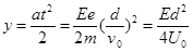 如图所示,在空间中取直角坐标系Oxy,在第一象限内平行于y轴的虚线MN与y 轴距离为d,从y轴到MN之间的区域充满一个沿y轴正方向的匀强电场,场强大小为E。初速可忽略的电子经过一个电势差U未确定的电场直线加速后,从y轴上的A点以垂直于电场的方向射入第一象限区域,A点坐标为(0,h),已知电子的电量为e,质量为m,(重力忽略不计),若电子可以在第一象限从MN边界离开电场区域,求: