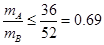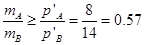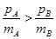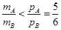 如图所示,在光滑的水平面上,有A、B两个小球. A球动量为10kg﹒m/s,B球动量为12kg﹒m/s.A球追上B球并相碰,碰撞后,A球动量变为8kg﹒m/s,方向没变,则A、B两球质量的比值可能为( )![]()