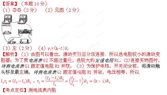 (4) 根据I2-I1图线的斜率k及定值电阻,写出待测电流表内阻的表达式______。