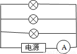 【答案】分析:首先认识电路的结构:三个灯并联,灯泡正常工作,