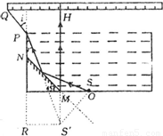 由题:光线SM的入射角为45°,根据反射定律可知反射角等于45°,则MH沿竖直方向.