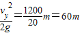 (4)根据落地时竖直方向上的分速度,运用vy=gt求出运动的时间.再根据x=vt求出水平射程.