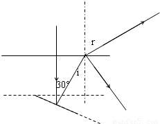 【答案】分析:(1)将平面镜绕水平轴顺时针转过15°角,反射光线将顺时针转过30°,反射光线在液面处的入射角等于30°,而反射光在液面处形成的反射光与折射光垂直,画出光路图,根据几何知识求出入射角为i=30°,折射角为r=60°,则可公式n=
