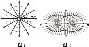 点评:该题考查几种常见的电场的特点,本题关键要能让负电荷做匀速圆周运动,必须有指向圆心的力提供向心力,故只能是位于圆心的正电荷提供.