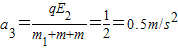 小车加速度不变,仍为a2=1m/s2向右,当两者速度相等时,货柜恰好到达小车最右端,以后因为qE2=f=µ(m+m1)g,货柜和小车一起作为整体向右以