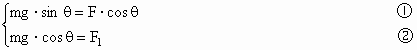由①可得F=mgtanθ, ⑤ 把④代入③中可得: 由⑤⑥解得 得 所以 |