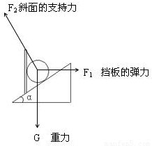 【答案】分析:以圆球为研究对象,分析受力情况:重力、竖直挡板的弹力和斜面的支持力,作出物体的受力图.