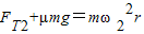 ,所以物体所需向心力小于物体与盘间的最大摩擦力,则物与盘产生的摩擦力还未达到最大静摩擦力,细绳的拉力仍为0,即FT1=0.
