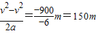 (2)汽车刹车后滑行的距离为150m.