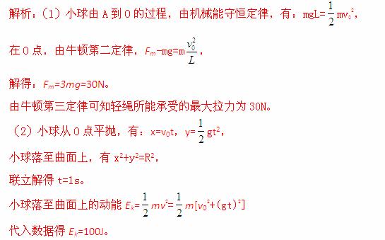 (2)小球落至曲面上的动能。