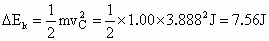 则 故 由于 所以 在验证机械能守恒定律的实验中,误差的一部分来自于空气阻力及纸带和打点计时器限位孔之间的摩擦,故重力势能的减少应等于动能增加量和克服阻力做功之和,所以此题在计算结果上肯定是重力势能减少的多,动能增加的少,其差值除偶然误差外,就是上述原因造成的. |
