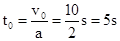 汽车刹车所用的时间为