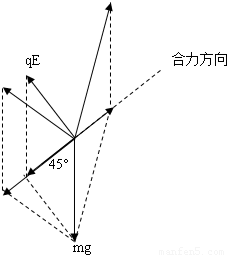 解答:解:据题,粒子恰好作直线运动,则其合力方向与速度方向在同一直线上,作出力的合成图如图,由图可知,当电场力qE与速度方向垂直时,电场力最小,电场力最小值为