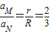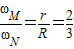 根据线速度与角速度的关系:v=ωr得:ωMR=ωNr,所以: