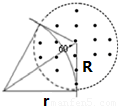 ÓÉÁ£×ÓÔ˶¯µÄ¶Ô³ÆÐÔ¿ÉÖª£¬ÈëÉäËÙ¶È·½Ïò¹ý´Å³¡ÇøÓòÔ²ÐÄ£¬Ôò³öÉäËÙ¶È·´ÏòÑÓ³¤Ïß¹ý´Å³¡ÇøÓòÔ²ÐÄ£¬Á£×ÓÔڴų¡ÖеÄÔ˶¯¹ì¼£ÈçͼËùʾ£¬Ôò¹ì¼£°ë¾¶Îª£ºr=Rtan60°=0.3m