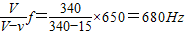 一机车汽笛频率为650Hz,机车以v=15m/s的速度观察者驶来,设空气中的声速是V=340m/s,观察者听到的声音频率为多少?