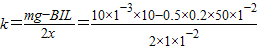 (2)当金属棒中通过0.2A由a到b的电流时,弹簧伸长为1cm,如果电流方向由b到a,而电流大小不变,弹簧又伸长是3cm.