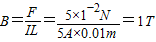 (2)该点的磁感应强度由磁场本身决定,与导线的放置方向以及电流大小和导线的长度等无关,故让导线与磁场平行,这点的磁感应强度为1T;