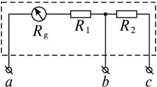 如图,有两个量程的电流表,当使用a b两个端点时,量程为1A,当使用a c两个端点时,量程为0.1A,已知电流表的内阻Rg为200Ω,满偏电流为2mA,求电阻R1、R2值.