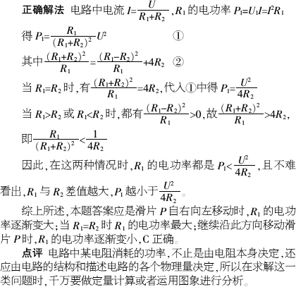 如图所示,电源电压保持不变,变阻器R1的最大值大于R2的阻值,在滑片P自右向左滑动过程中,R1的电功率