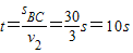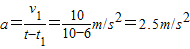 10s内汽车由A到B且停在B点,设车从A经t1开始刹车: