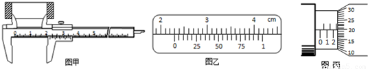 用螺旋测微器测一金属杆的直径,结果如图丙所示,则杆的直径是 mm。![]()