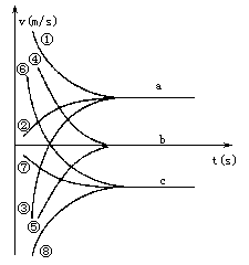 解题过程:如下图所示,速度图线的斜率表示加速度.加速度逐渐减小到零,即速度图线的斜率逐渐减小到零.表现在速度图线上,则速度图线由曲线最后变成平行于横轴的直线.图中a,b,c三条直线表示末状态时的三种可能.由曲线渐变成图中直线共有八种可能形式,如图中①~⑧所示.由运动的对称性可知,只有四种运动形式.图线①⑧表示速度不断减小,到加速度为零时,速度减到最小,而后做匀速直线运动,D正确;图线②⑦表示速度不断增大,到加速度为零时,速度达到最大,而后做匀速直线运动,A正确;图线③⑥表示速度不断减小到零,然后向相反方向做加速运动,最后做匀速直线运动,C正确;图线④⑤表示速度不断减小,到加速度为零时,物体停止运动,B正确.