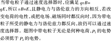 匀强磁场的磁感应强度B、匀强电场的电场强度E和被选择的速度v的大小应满足vB=E