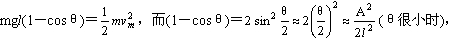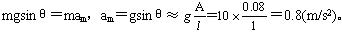 发生共振时,单摆振动的振幅最大,A=8cm,设摆线偏离竖起方向的最大偏角为θ,