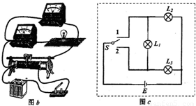 故答案为::(1)如图b (2)由于RL1比RL2小得多,灯泡L2分得的电压很小,虽然有电流渡过,但功率很小,不能发光 (3)如图c