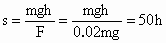 如图所示,一个质量为m的小球自高h处由静止落下,与水平面发生多次碰撞后,最后静止在水平面上.若小球在空中运动时受到的阻力恒为小球重力的0.02倍,小球与水平面碰撞时不损失能量.则小球在停止运动之前运动过程中所通过的总路程为多少?