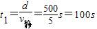 汽艇在静水中的速度为5m/s,如果汽艇在宽为500m,水速为3m/s的河中渡河,则渡河所用的最短时间为 ;如果要使汽艇渡河的位移最短,则所用的时间为 .