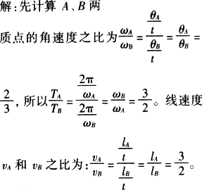 A、B两质点分别做匀速圆周运动,若在相等时间内,它们通过的弧长之比sA∶sB=3∶2,而通过的圆心角之比θA∶θB=2∶3,则它们的周期之比TA∶TB=________,角速度之比ωA∶ωB=________,线速度之比vA∶vB=________.