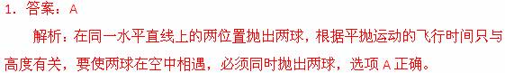 (2013四川自贡一诊)在同一水平直线上的两位置分别沿同方向水平抛出两个小球A 和B,其运动轨迹如右图所示,不计空气阻力.要使两球在空中相遇,则必须 ( )