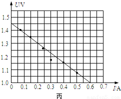 (2)黑箱内的电路可看成一个“等效电源”,a、b是等效电源的两极.为了测定这个等效电源的电动势和内阻,该同学设计了如图乙所示的电路,调节滑动变阻器的阻值,记录下电压表和电流表的示数,并在方格纸上建立了U-I坐标,根据实验数据画出了坐标点,如图丙所示.请你作进一步处理,并由图求出等效电源的电动势E= V,内阻r= Ω.