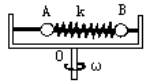 离心机的光滑水平杆上穿着两个小球A、B,质量分别为2m和m,两球用劲度系数为k的轻弹簧相连,弹簧的自然长度为L.当两球随着离心机以角速度ω转动时,两球都能够相对于杆静止而又不碰两壁.求A、B的旋转半径RA和RB.![]()