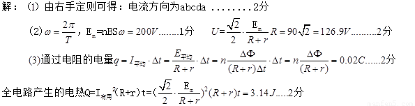 (1)电流方向abcda(2)126.9V(3)3.14J
