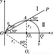 速度方向与OP的夹角为300,故质子在磁场I中轨迹的圆心角为