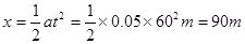 从静止开始做匀加速直线运动的物体,前20s内的位移是10m,则该物体运动1min时的位移为 ( )