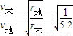 ,木星的轨道半径约为地球轨道半径的5.2倍,