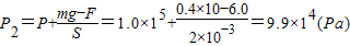 (2)现保持管内封闭气体温度不变,用竖直向上的力F缓慢地拉动活塞.当活塞上升到某一位置时停止移动,此时F=6.0N,则这时管内外水面高度差为多少?管内气柱长度多大?