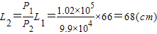 (2)这时管内外水面高度差为0.1m,管内气柱长度是68cm.