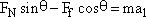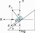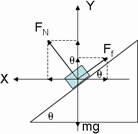 解:(1)设物体处于相对斜面欲向下滑动的临界状态时推力为F1,此时物体所受摩擦力沿斜面向上,取加速度方向(水平向左)为x正方向,坚直向上为y轴正方向,根据牛顿第二定律,对m物体有: x方向: y方向: Ff=μFN 对整体:F1=(M+m)a1(2分) 代入数值解得:a1=4.78 m/s2,F1=14.34 N(2分)