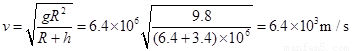 已知地球半径R =6.4×106m,地面附近重力加速度g=9.8m/s2,计算在距离地面h=3.4×106m的圆形轨道上的卫星做匀速圆周运动的线速度v和周期T