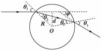 雨过天晴,人们常看到天空中出现彩虹,它是阳光照射到空中弥漫的水珠上时出现的现象.在说明这个现象时,需要分析光线射入水珠后的光路.一细束光线射入水珠,水珠可视为一个半径R=10mm的球,球心O到入射光线的垂直距离d=8mm,水的折射率n=4/3.